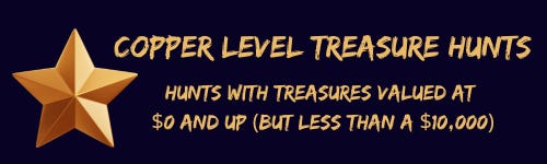 Hunts with treasures valued at $0 and up (but less than $10,000)